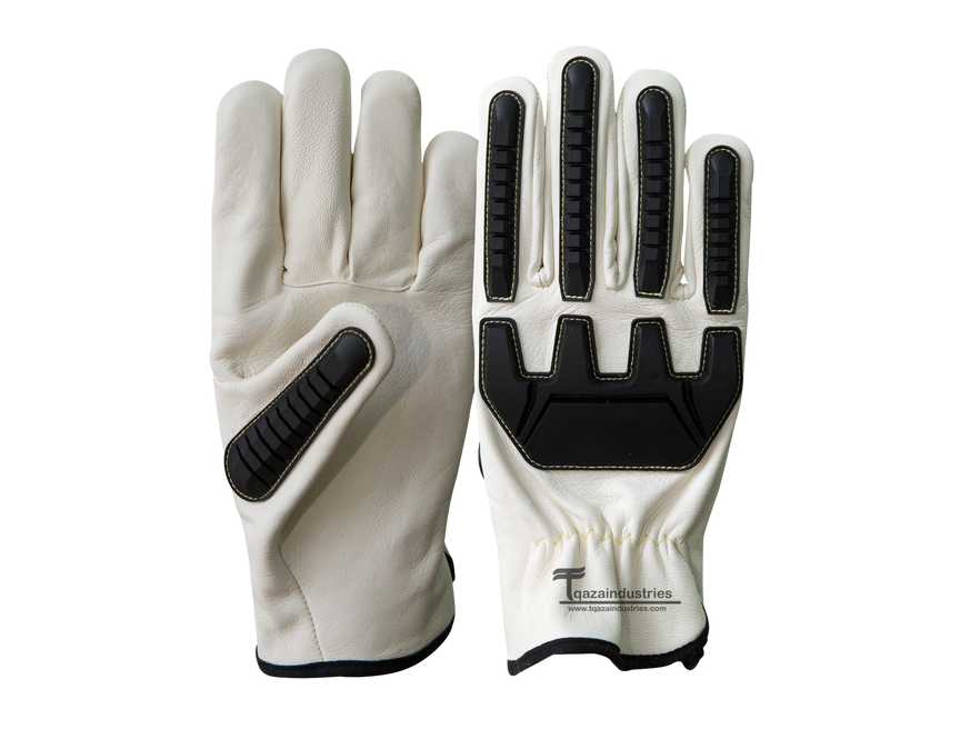 “Goatskin gloves with TPR knuckles, padded palm, PVC